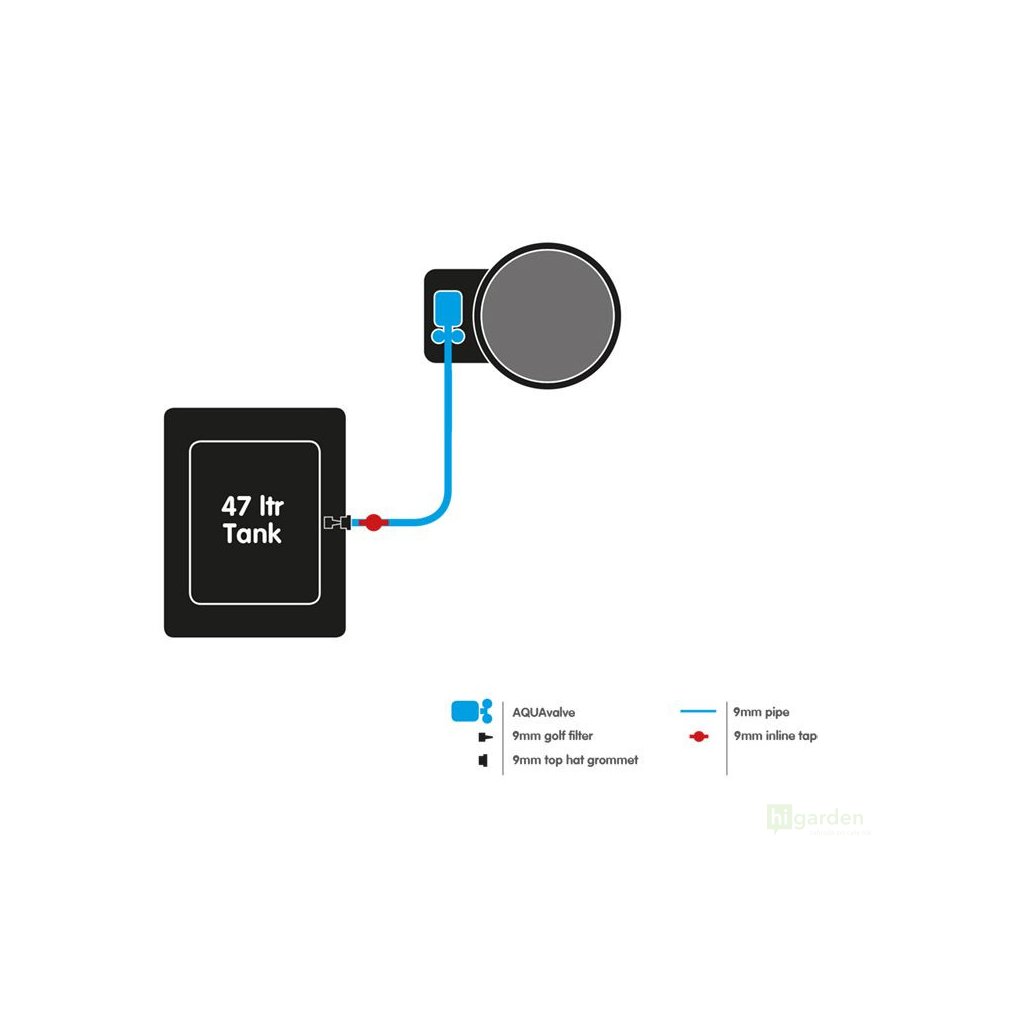 Wie alle unsere Systeme kann der FlexiPot leicht erweitert werden, so dass viele Töpfe an einen Tank angeschlossen werden können. Der Tank ist in diesem Produkt nicht enthalten.