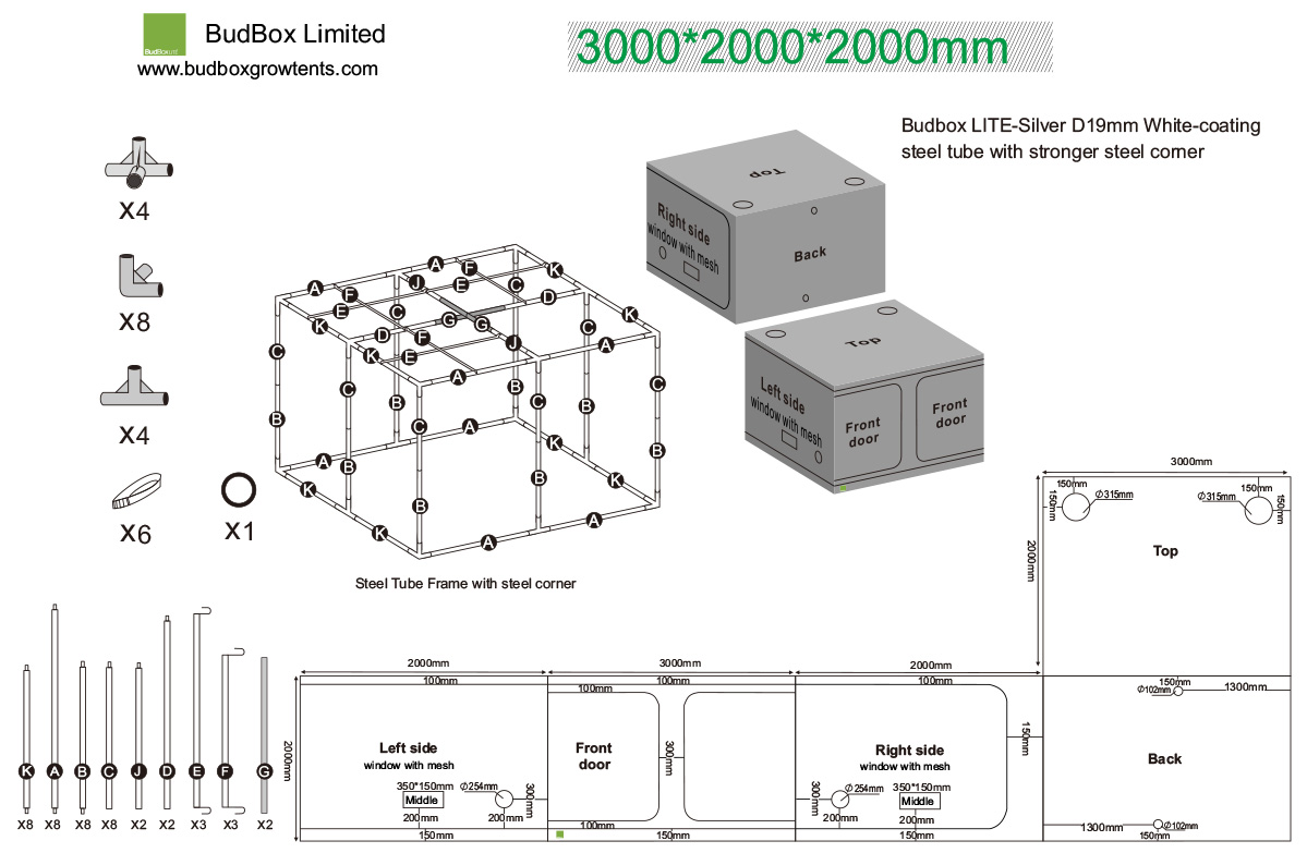 Die Zelte der LITE-Serie mit der Bezeichnung M (Metall) zeichnen sich dadurch aus, dass die Konstruktion aus dickeren weißen Stahlrohren mit einem Durchmesser von 19 mm besteht. Darüber hinaus sorgen die Metallverbindungen für eine perfekte Stabilität der Growbox