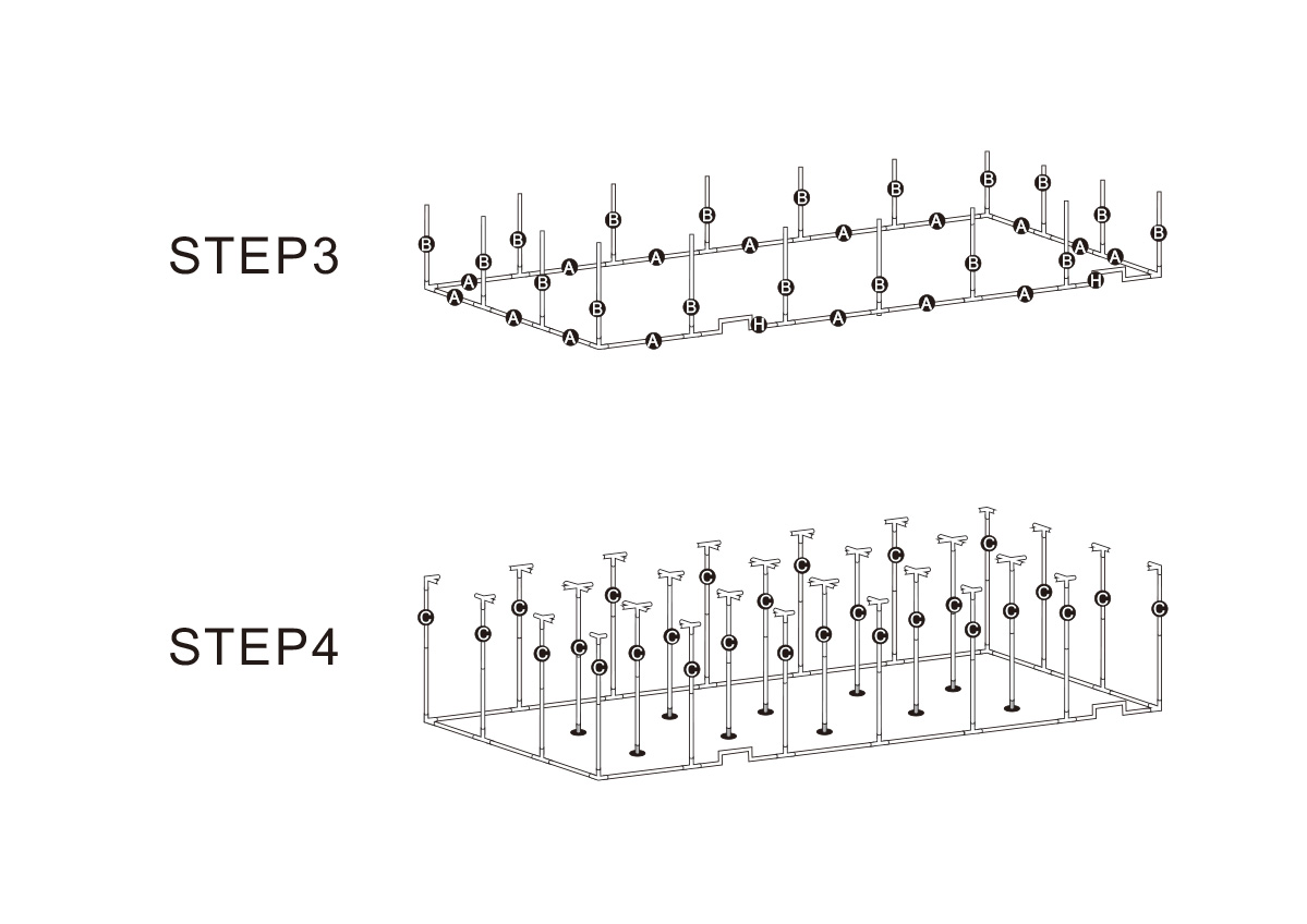 - die Konstruktion besteht aus dickeren schwarzen Stahlrohren mit einem Durchmesser von 25 mm und Metallverbindungen sorgen für perfekte Stabilität