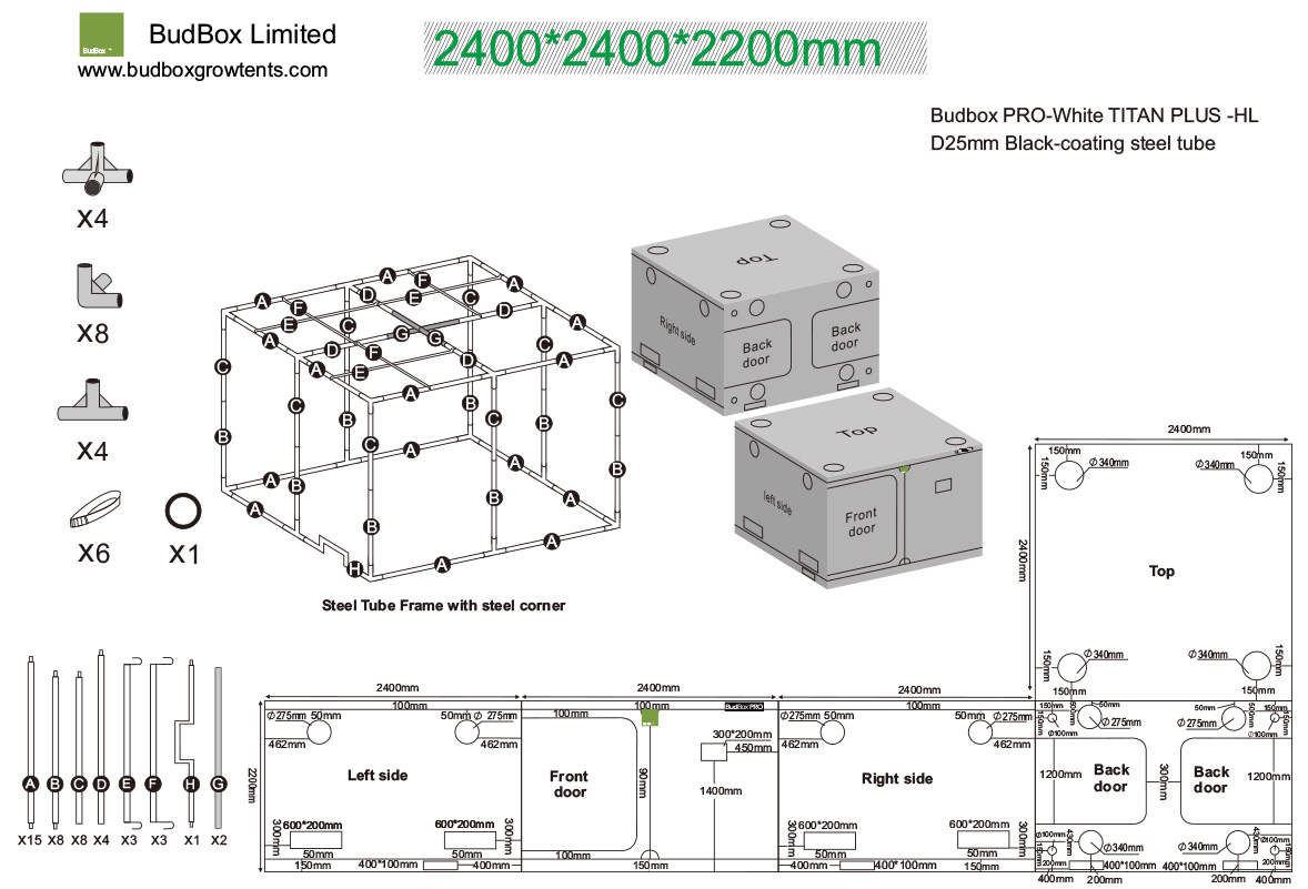BudBox PRO Titan+ HL 240x240x220cm - weiß