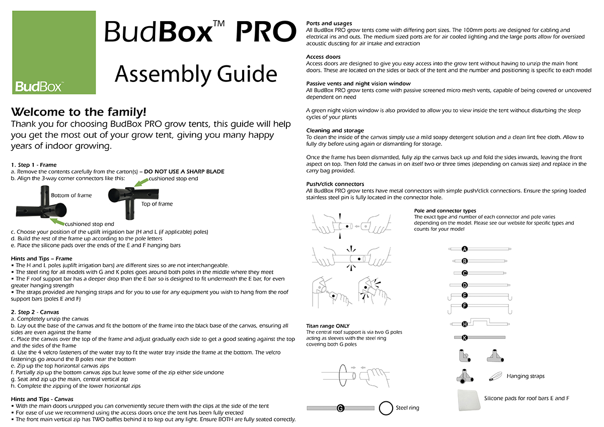 - BudBox besteht aus einer breiten Palette von Anbauzelten in jeder erdenklichen Größe.