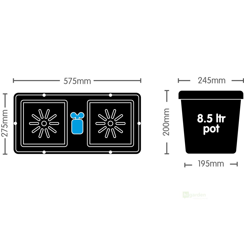 Es ist eines der wassersparendsten Bewässerungssysteme der Welt. Sie kann für den Anbau aller Arten von Pflanzen verwendet werden, sowohl für Lebensmittel als auch für dekorative Zwecke. Das System ist anpassungsfähig und kann schnell und einfach erweitert werden. Das ideale Substrat für AutoPot ist eine Mischung aus 50 % Perlit oder Blähton und 50 % Erde, Kokossubstrat oder Grodan-Rockwool. Bei der Verwendung von Blähton ist es notwendig, die Tonkiesel mit Wasser abzuspülen, da einige Arten von Blähton nicht pH-stabil sind und den pH-Wert des Wassers in der Schale erhöhen, was sich negativ auf das Pflanzenwachstum auswirkt.