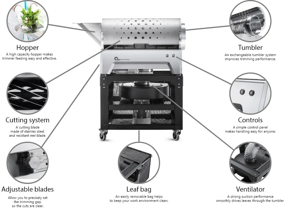 Der Sunflower Automatic Trimmer L ist ein einzigartiges, vollautomatisches Gerät mit einer Schnittleistung von bis zu 12 Kilogramm pro Stunde.