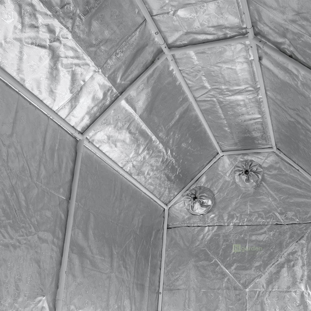 Außerdem bietet er viele Anschlussmöglichkeiten für Belüftung, Kabeldurchführungen - alles mit doppeltem Pull-Down-Verschluss. Das Zelt besteht aus strapazierfähigem Tri-Layer 600 Denier Material mit einer reflektierenden Oberfläche namens UltraLux, die bis zu 30 % mehr Reflektionsvermögen bietet als herkömmliche Produkte. Das Zelt hat Tivax-Reißverschlüsse, die an allen Eingängen angebracht sind und die Fähigkeit bestätigen, im geschlossenen Zustand gut abzudichten.