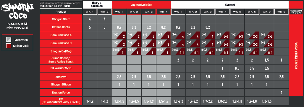 Für eine ideale Dosierung können Sie verwenden Shogun Düngemittelrechnerdie Ihnen helfen wird, die genaue Anzahl von ml für Ihre Gießkanne auf der Grundlage Ihres Kultursubstrats zu berechnen. Der Rechner wertet dann die Dosierungstabelle mit allen Zusatzstoffen aus, in der Sie die von Ihnen verwendeten Produkte ankreuzen und die Werte in der Tabelle entsprechend verändern.