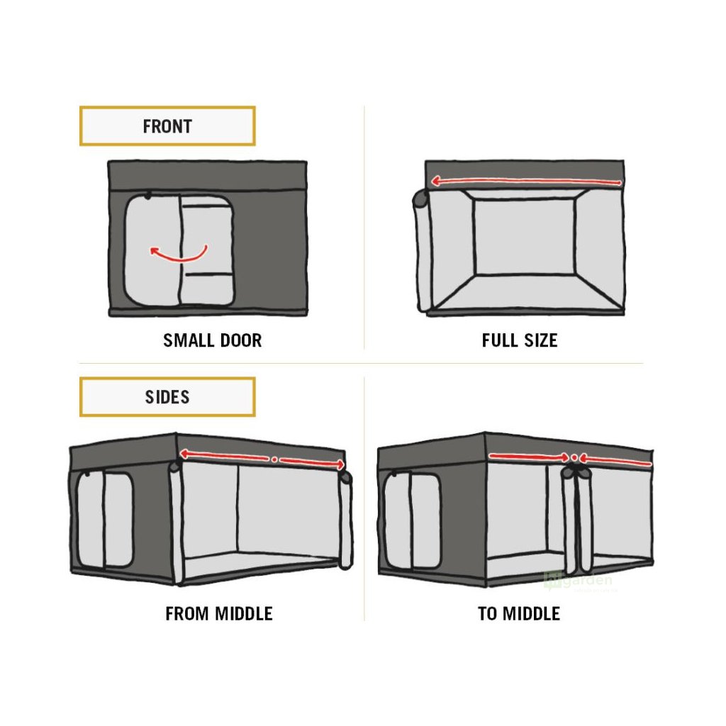 Der größte Vorteil der Intense-Serie ist ihr einzigartiges Design mit einem 60 cm breiten Mittelgang. Dieser ermöglicht Ihnen einen bequemen Zugang zu den Pflanzen von beiden Seiten, ohne diese zu beschädigen. Dank der vollständig abnehmbaren Seitenwände erhalten Sie einen 360°-Zugang für einfache Wartung, Bewässerung und Ernte.