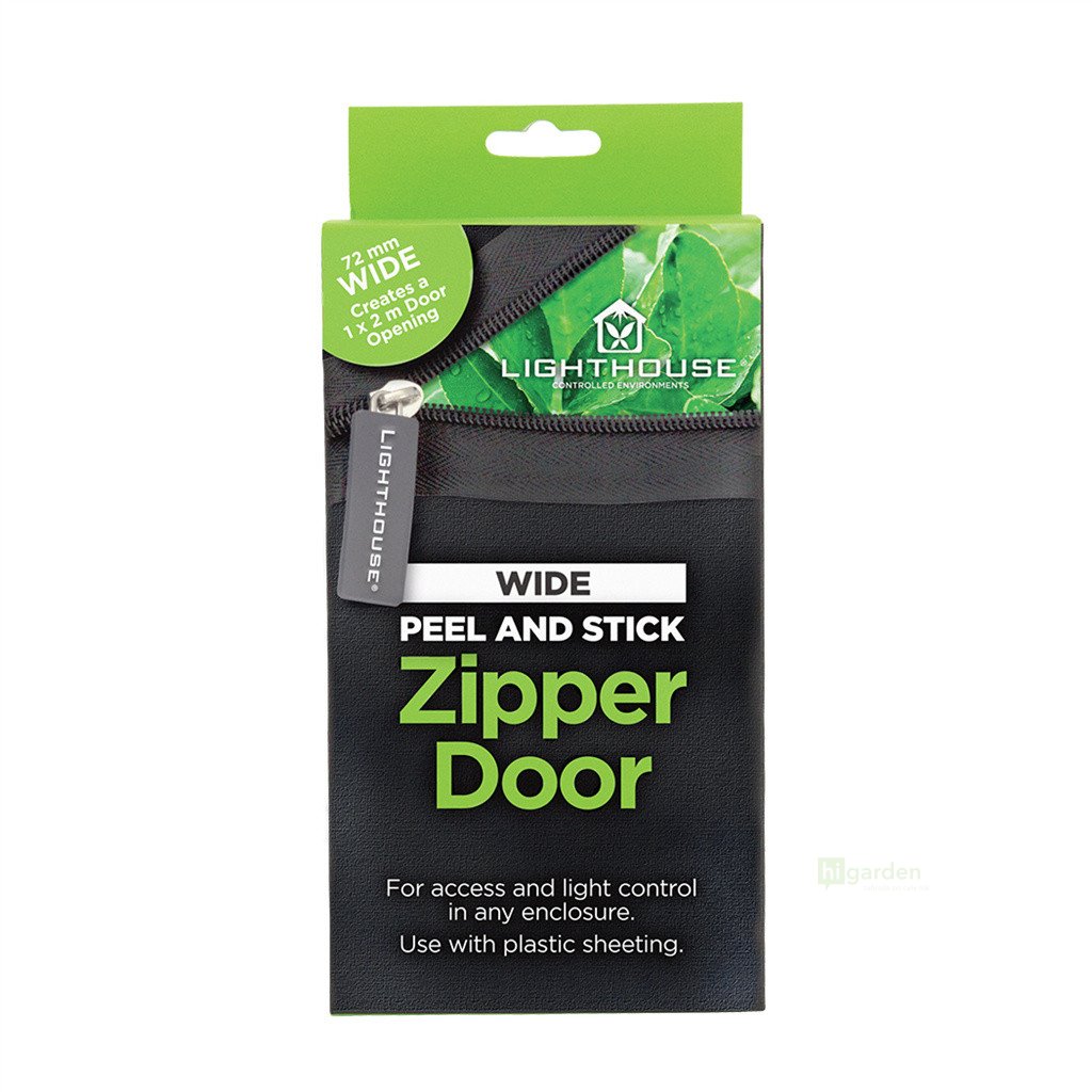 LightHouse Wide Zipper Door ist ein System von Reißverschlüssen mit Abzieh- und Aufklebemöglichkeit, das einen einfachen Zugang und die Regulierung des Lichts in jedem Growzelt ermöglicht.