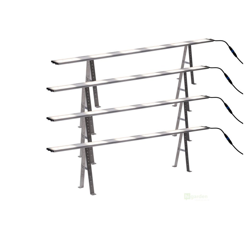 SANlight STIXX Undercanopy 150x300 cm SET A ist ein komplettes professionelles Undercanopy-Beleuchtungsset, das für die effiziente Zusatzbeleuchtung der unteren Pflanzenetagen auf einer Fläche von ca. 150x300 cm entwickelt wurde. Bei großen und dichten Pflanzenbeständen dringt die Hauptbeleuchtung oft nicht ausreichend in die unteren Bereiche der Pflanzen ein, was die Photosynthese einschränkt und die Qualität der Blüten im unteren Bereich reduziert. Diese Konfiguration löst das Problem durch eine gleichmäßige Ausleuchtung unterhalb der Pflanzenkrone, was zu einer besseren Struktur, Vitalität und einer insgesamt homogeneren Pflanzenmasse führt.