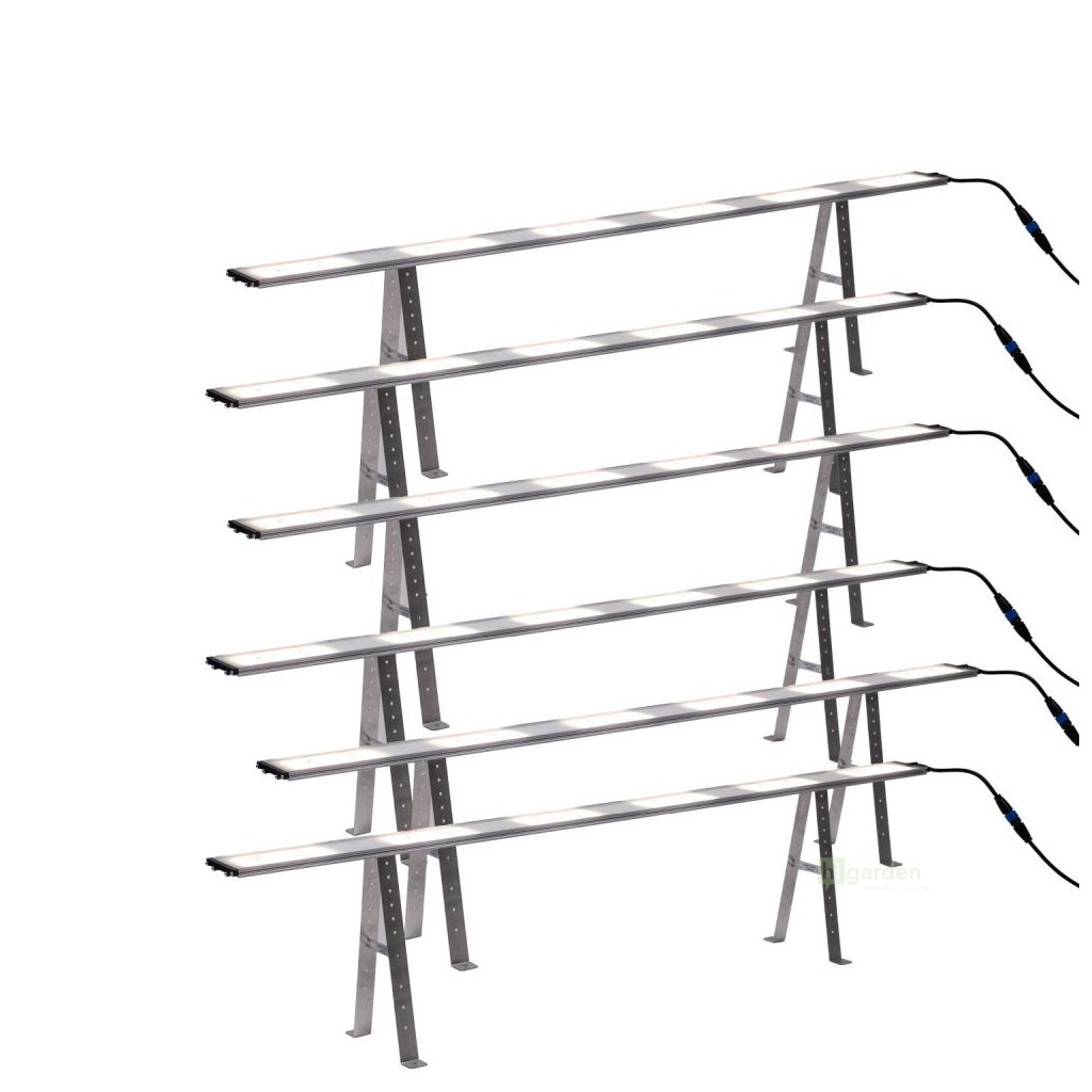 SANlight STIXX Undercanopy 150x300 cm SET B ist ein komplettes professionelles Under-Canopy-Beleuchtungsset, das für eine maximal intensive Ausleuchtung der unteren Pflanzenetagen auf einer Fläche von ca. 150x300 cm entwickelt wurde. Bei großen und voluminösen Pflanzenbeständen dringt das Licht oft nicht ausreichend in die unteren Bereiche ein, was die Photosynthese einschränkt und die Qualität der Blüten in der unteren Zone reduziert. Diese Konfiguration bietet die höchste Beleuchtungsdichte innerhalb der STIXX-Sets und ermöglicht eine gleichmäßige Durchleuchtung tief in den Pflanzenbestand, eine bessere Kontrolle der Pflanzenmorphologie und eine deutlich höhere Ausnutzung des gesamten Zuchtbereichs.