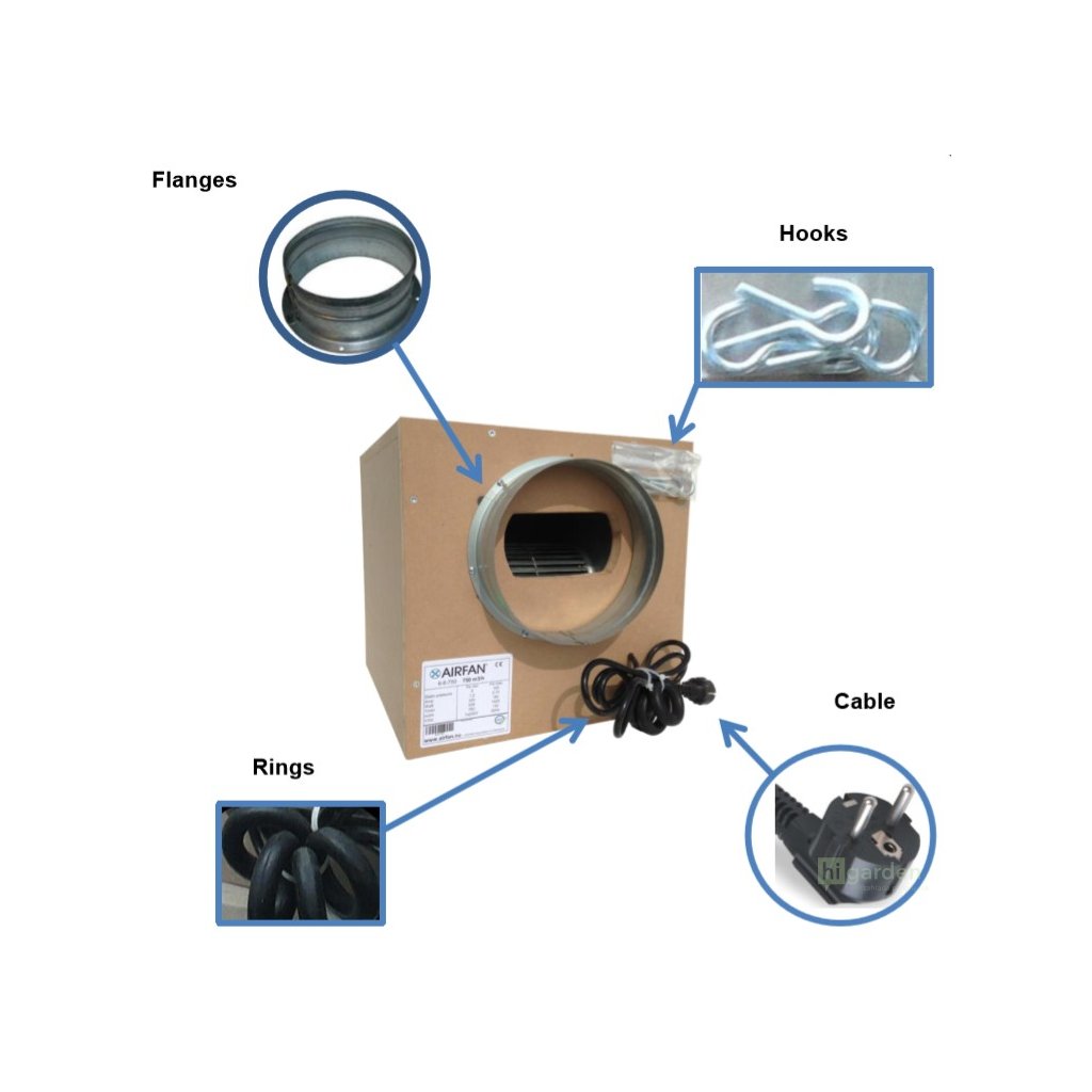 Airfan ISO-Box 750 m³/h schallgedämpfter und kastenförmiger Ventilator, der in der Box befestigt ist.
